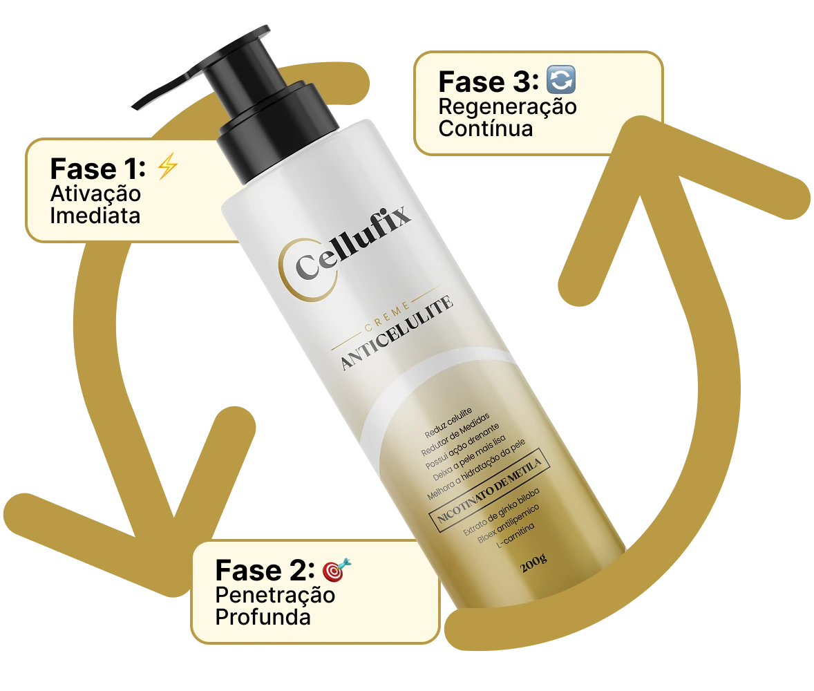 O CelluFix foi formulado para atuar nesse nível profundo da pele e resolver o problema em sua origem, na causa raiz, tendo ativos como a L-Carnitina, que penetra na hipoderme e ajuda a reduzir a adiposidade, além de estimular a produção de colágeno e elastina.